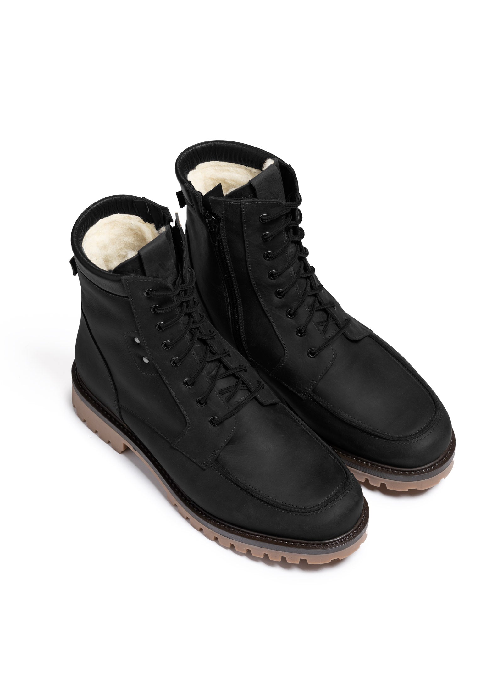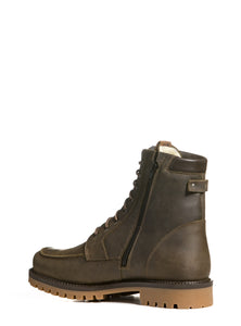 The VERSANT boot blends mountain spirit with everyday functionality. Built from waterproof full-grain leather and fully lined in natural wool, it delivers breathable insulation without compromising on style. The moc-toe design and interior zipper combine classic detailing with easy on-and-off convenience. Set on a robust lugged sole, it offers confident traction from city sidewalks to country trails. Whether paired with denim, wool trousers or a field jacket, VERSANT moves with purpose—built for winter, styled for life.