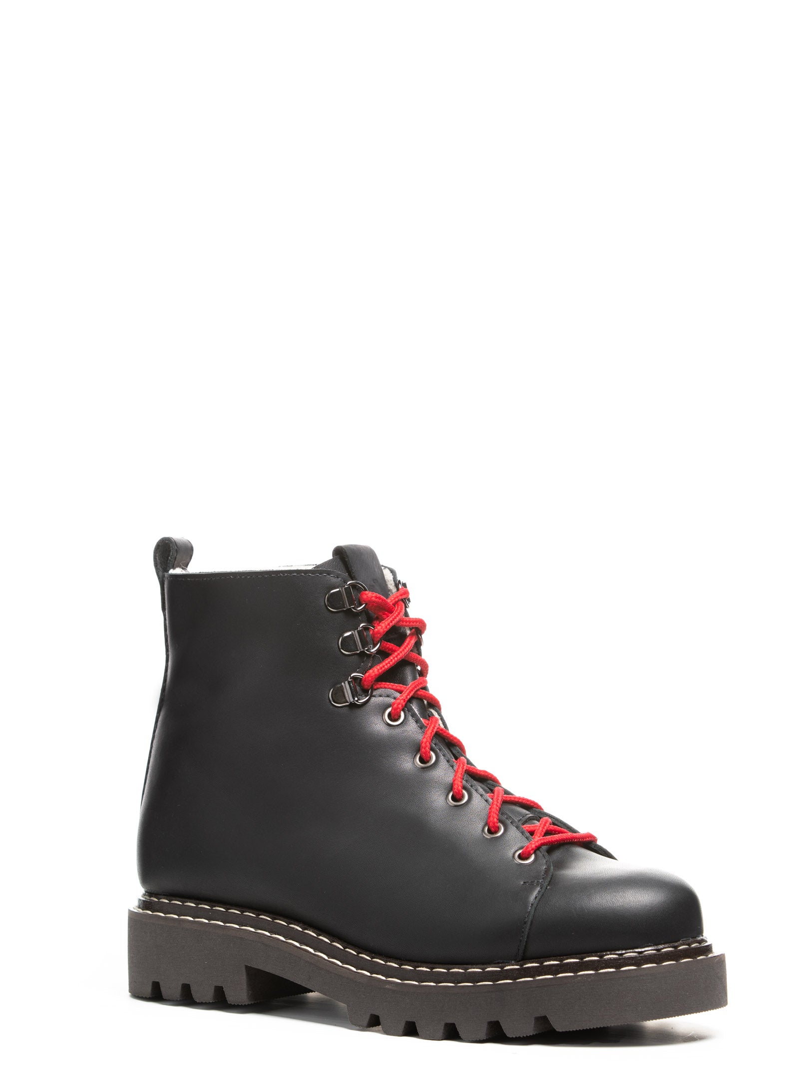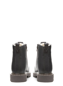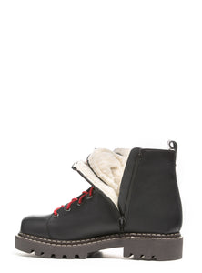Crafted from buffed waterproof leather, the Andrea boot brings rugged style to cold-weather days. Fully lined in natural wool for targeted warmth and everyday comfort. A bellows tongue keeps out slush and snow, while the full interior zipper makes for easy on and off. Finished with bold red laces (with black included), signature contrast stitching, and a sturdy lug sole, Andrea blends heritage function with everyday attitude.